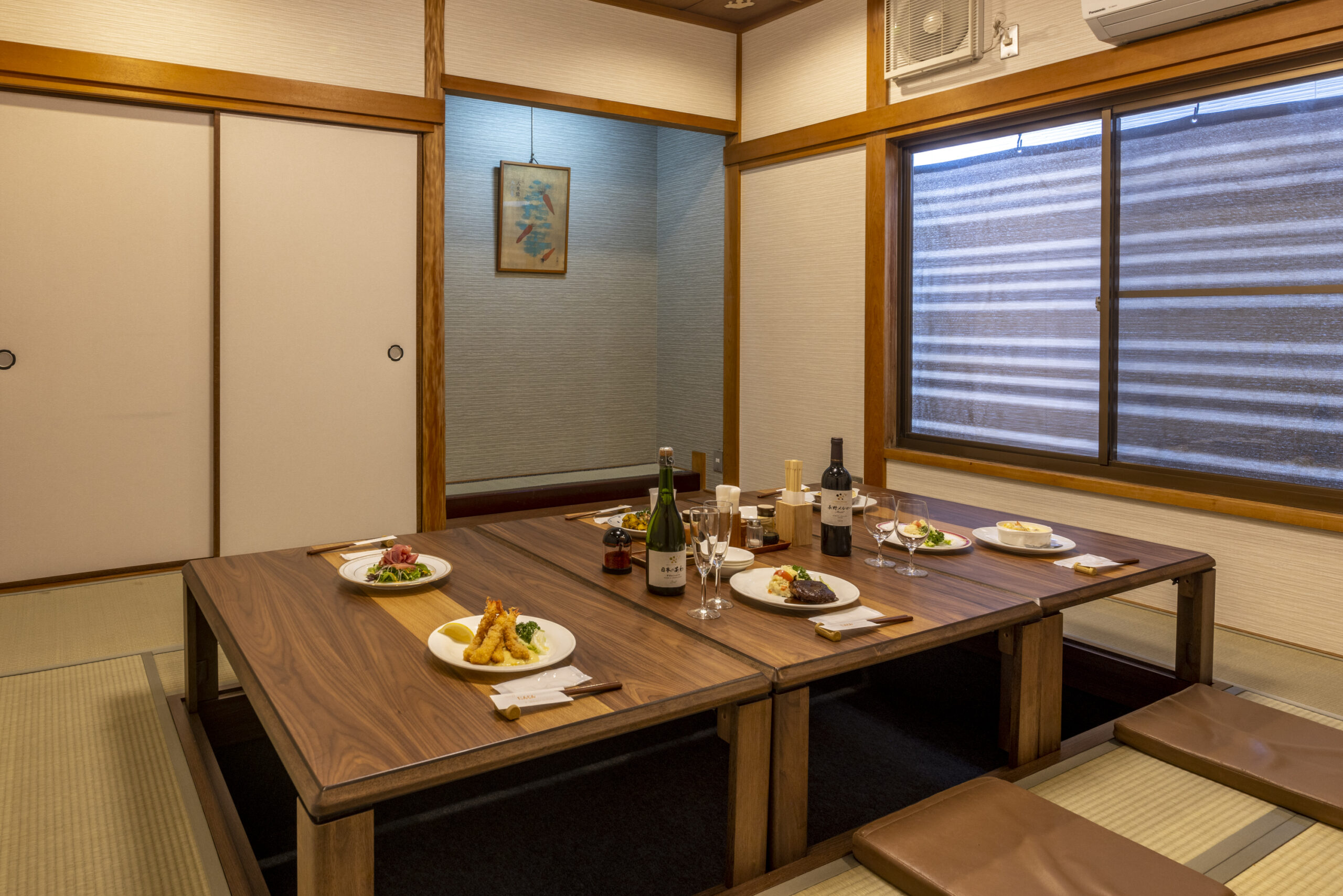 誕生日、記念日などのお祝いの席はもちろん、会社の接待や宴会、ママ友のランチ会にもご利用できます。落ち着く和のプライベート空間で贅沢な洋食と厳選したワインをご堪能下さい。 We have one tatami room (private room) available. It can be used for celebrations such as birthdays and anniversaries, as well as for company entertainment, banquets, and lunch meetings for mothers’ friends. Please enjoy our luxurious Japanese Western cuisine(洋食)and carefully selected wines in a relaxing Japanese private space.. #グリルにんじん #京都 #洋食 #yosyoku #レストラン